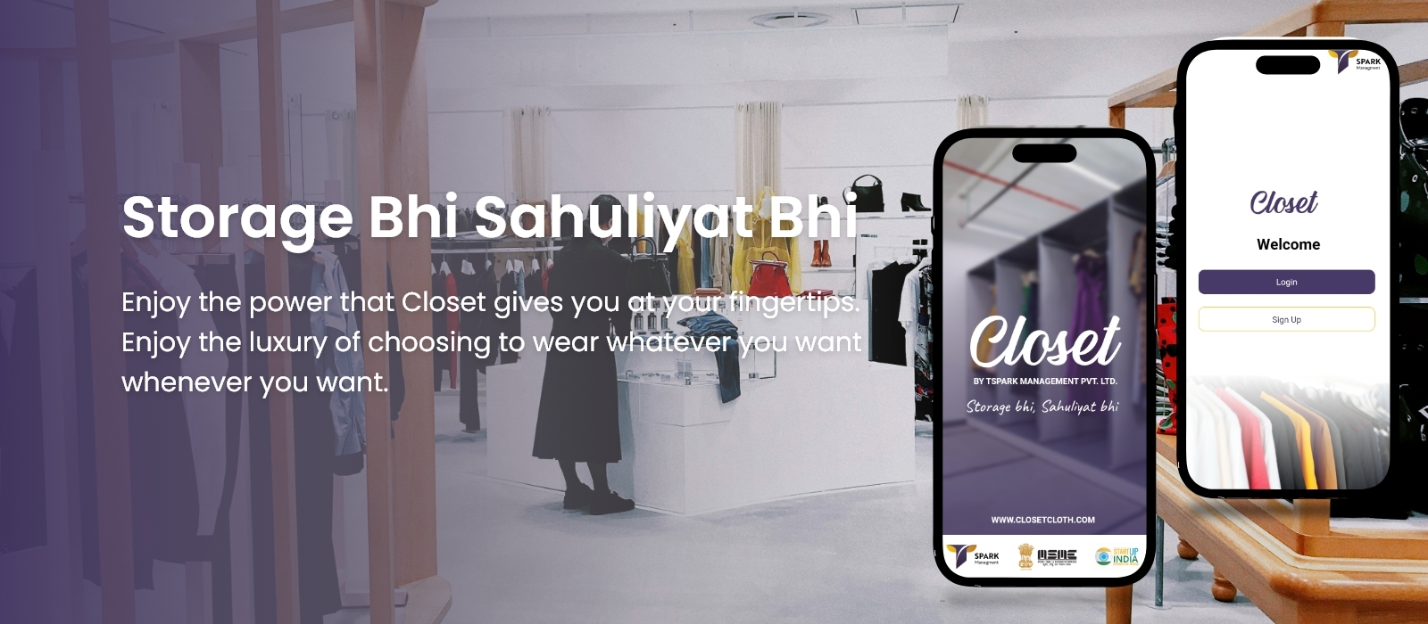 CLOSET, a clothing bank by TSPARK Management Pvt. Ltd., addresses space constraints in apartments. It aims to revolutionize clothes storage, acknowledging the challenge of limited space, offering a solution for proper garment care and storage needs.